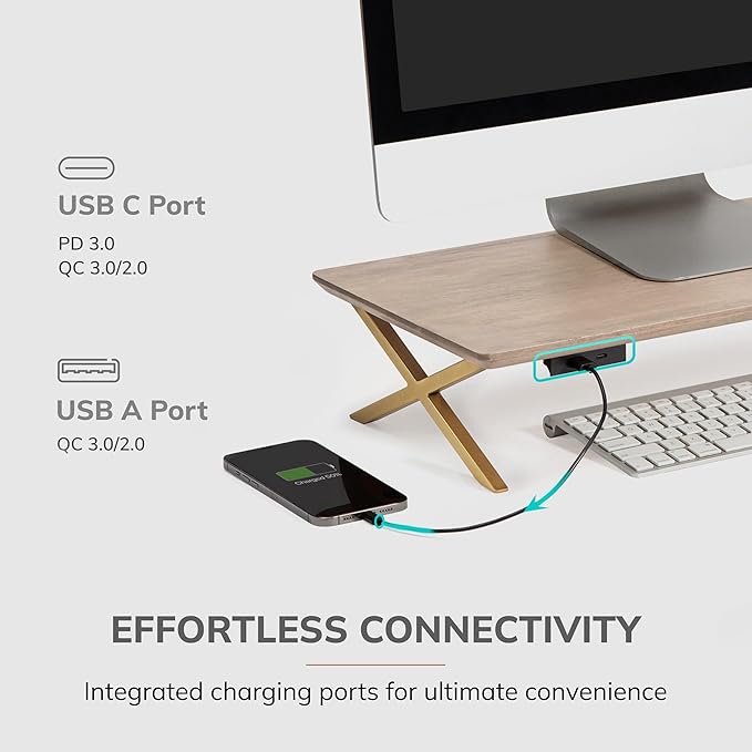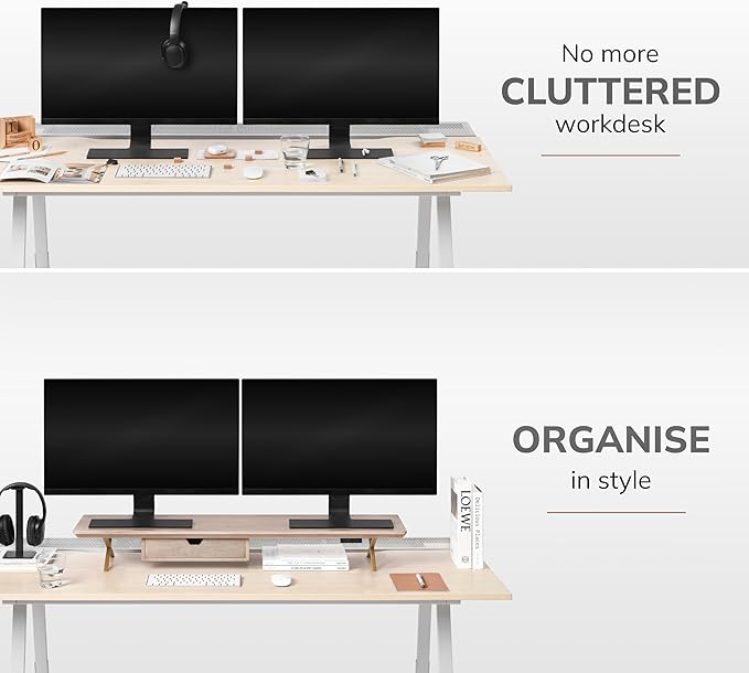 • Premium Wood Finish: Our wood monitor stand, designed for elegance, complements any decor. As a desk monitor riser, it combines functionality with aesthetic appeal, seamlessly integrating into your workspace as a desktop monitor stand.
