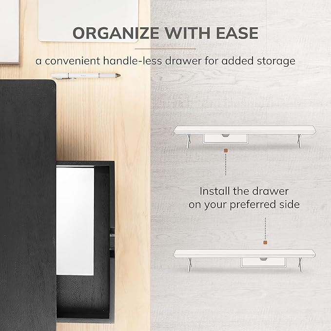 - Premium Wood Finish: Our wood monitor stand, designed for elegance, complements any decor. As a desk monitor riser, it combines functionality with aesthetic appeal, seamlessly integrating into your workspace as a desktop monitor stand.