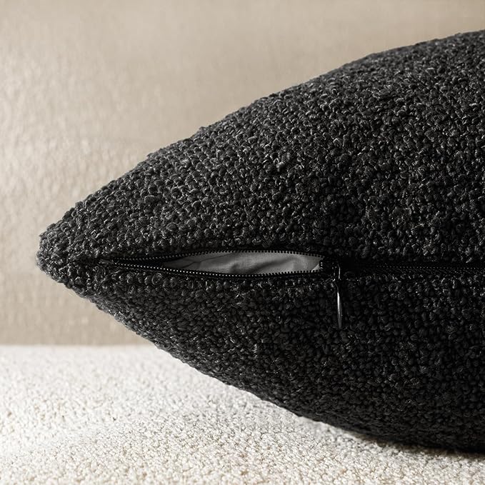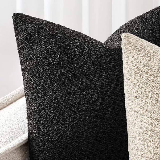 Woaboy Pack of 2 20x20 Inch Decorative Boucle Throw Pillow Covers Textured Square Pillowcaes Accent Solid Cozy Soft Cushion Covers Home Decor for Sofa Couch Living Room Home Decor,Black