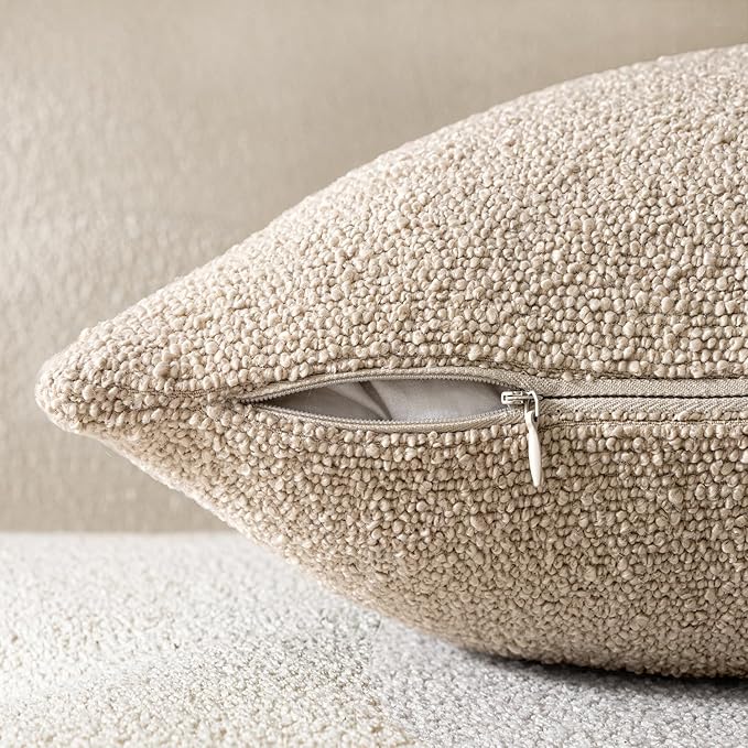 Woaboy Pack of 2 12x20 Inch Decorative Boucle Throw Pillow Covers Textured Lumbar Pillowcaes Accent Solid Cozy Soft Cushion Covers Home Decor for Sofa Couch Living Room Home Decor,Neutral