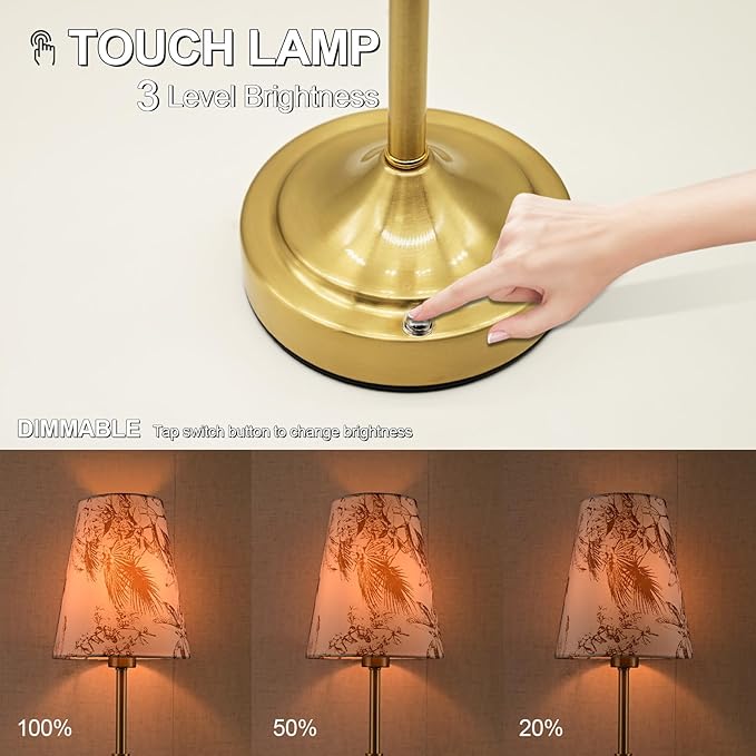 - 【🌹Cordless &Portable Lamp】:Our gold metal table lamp is powered battery table lamp, no cords to hide! A rechargeable table lamp provides you with the freedom to move it wherever you need light. Whether during a brief power outage or taking it outdoors for a cozy evening, this battery-operated lamp is hassle-free and convenient