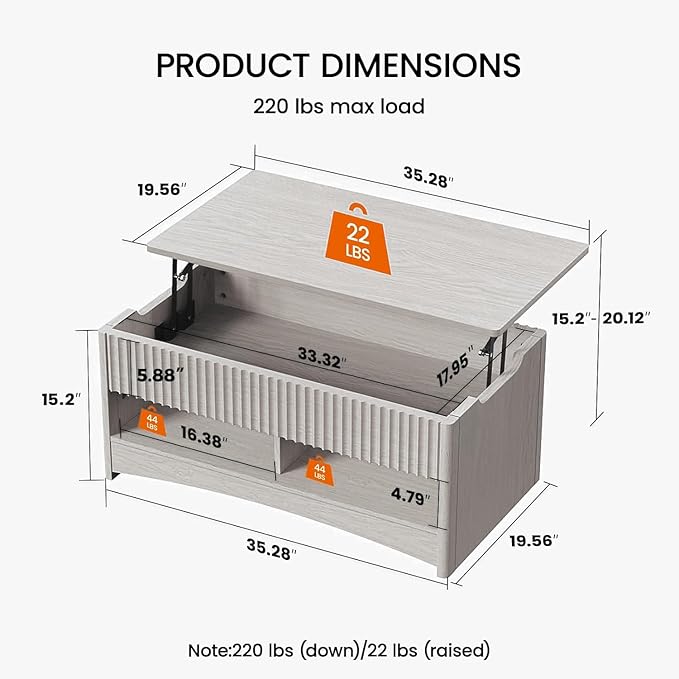 - 【2-in-1 Multi-Functional Coffee Table】Lift up coffee table easily transitions between two modes: raise the tabletop for a comfortable work desk or dining space, and lower it down to function as a modern coffee table. Table Height Range: 15.2" - 20.12"