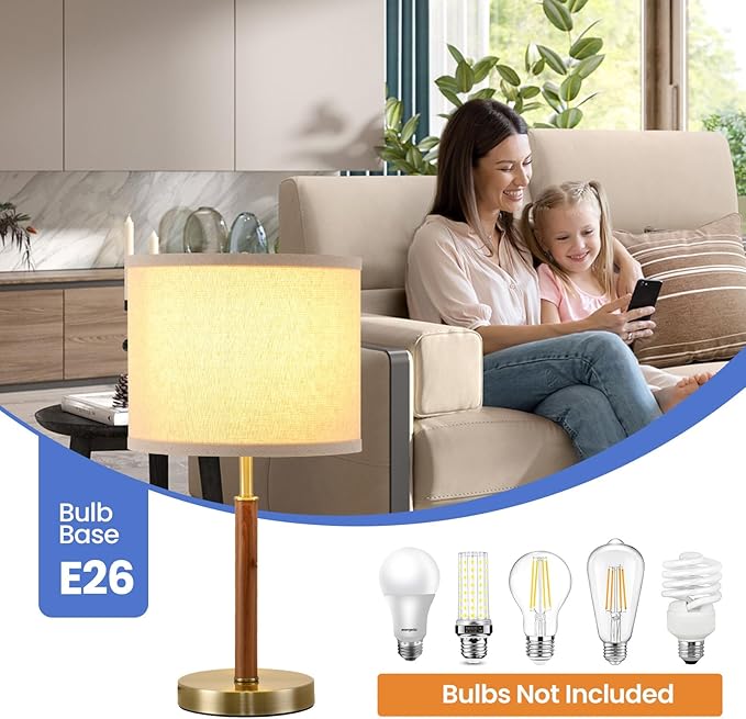 - Space-Saving & Functional Lamp Shade: 19.5" High overall, this small table lamp brass takes less space, lamp shade can be rolled up, simple to assemble in 5 mins, the shade of our bedside lamp is made of linen to ensure even and soft light distribution, protecting your eyes.