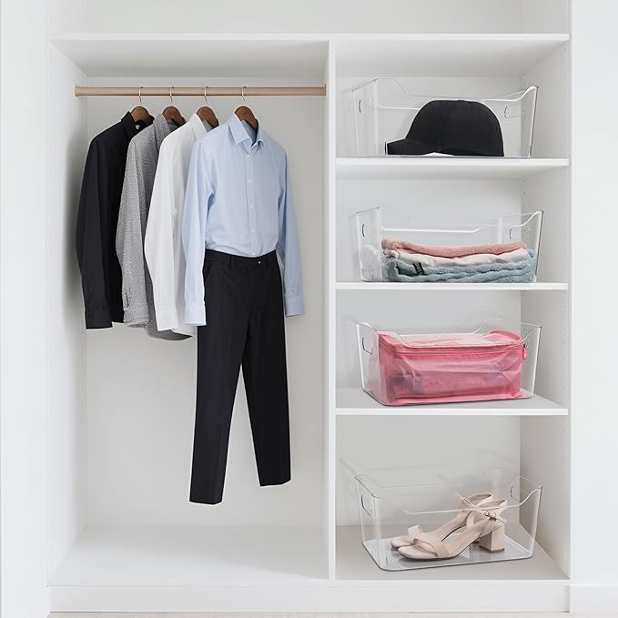- Multipurpose Bins: Designed to keep your pantry shelves neatly organized. Our clear organizer bins are great for home and office use for organization. Also use in craft room, laundry room, bedroom, bathroom, garage, playroom and more. Expand your possibilities with our versatile clear organizer.