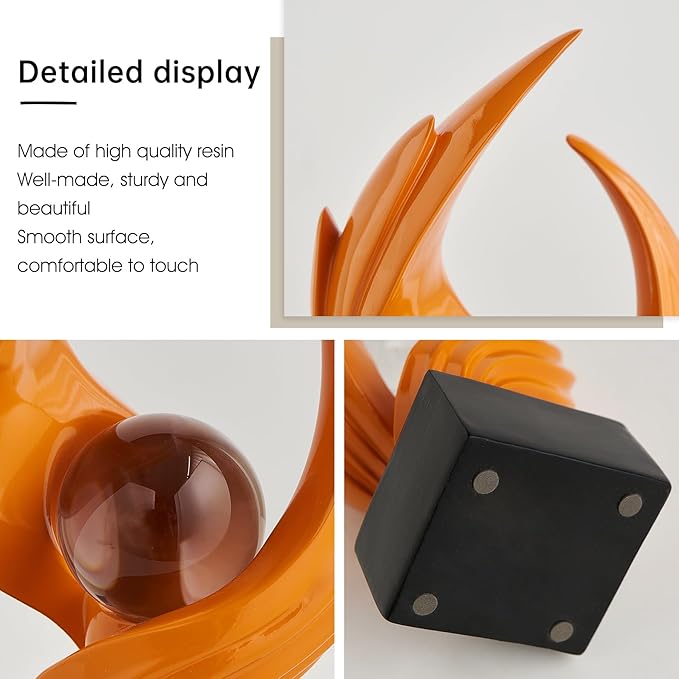 - Abstract Art Sculpture – Crafted with premium resin, this 11.02" tall (28cm) decorative statue showcases a 2.36" diameter (6cm) crystal ball centerpiece. The base measures 6.38" (16.2cm) in length and 4.65" (11.8cm) in width, balancing modern design with artistic elegance.