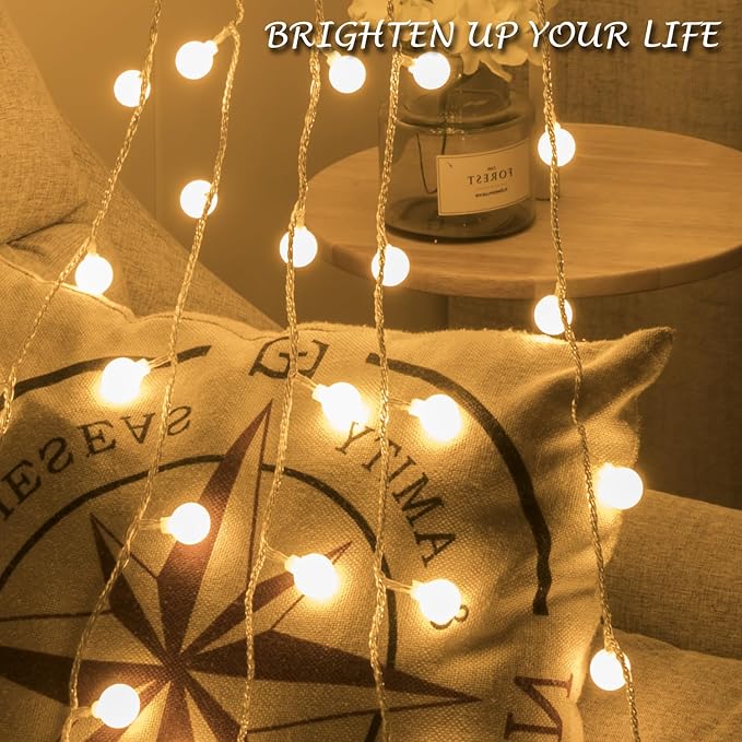 - 100 LED Xmas Globe Lights: The 49 ft string of Christmas globe lights, featuring up to 100 LED bulbs and 8 adjustable modes is ideal for enhancing your home decor and bringing a warm atmosphere to your party or living space, make colourful lights brighten up your cheerful life. It can be widely used for decoration of Christmas tree, bedroom, windows, party, wedding, window, Holiday, Christmas, doors etc.