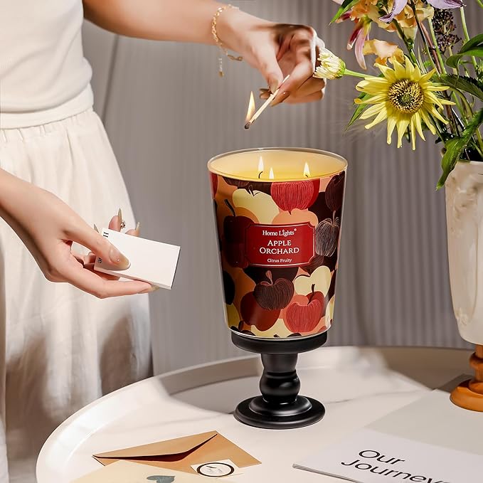 - 【Apple Orchard Aromatic Experience】This crisp, fruity scented candle blends juicy apple top notes with a floral heart of jasmine, grounded in a warm, woody base of musky. Perfect for creating cozy, inviting atmospheres in living rooms, kitchens, or autumn gatherings.