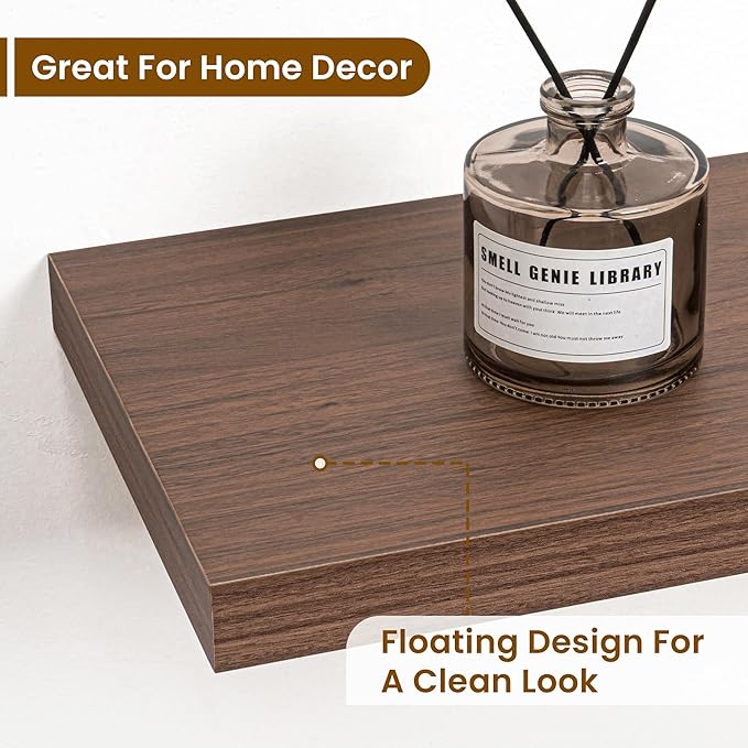 - Rustic Wooden Floating Shelves: Crafted from sturdy MDF, these floating shelves (23.6" W x 9.3" D x 1.2" H) feature robust iron brackets that support up to 30 lbs. The durable build provides a reliable surface for displaying photos, trophies,and decorative items