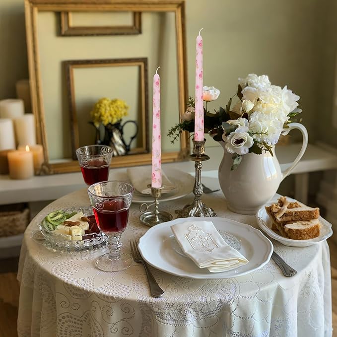 10 Inch Flower Taper Candles 4 Pcs Unscented, Smokeless, Dripless Long Tapered Candlesticks Candles for Mother's Day Birthday Dinner Dating Wedding Party Home Decor