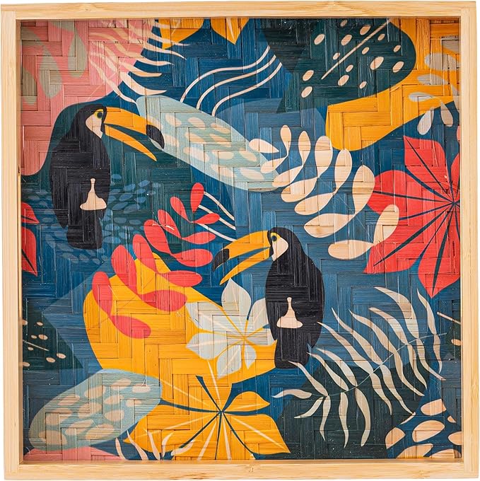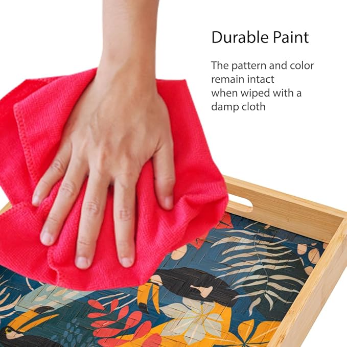 PEMAR 12.2" Square Bamboo Art Decor Tray with Handle, Food Drink Serving Tray for Breakfast Lap Bed Eating. Pattern Printed on Bamboo. Decorative Catchall Coffee Table Entryway Nightstand (Toucan)