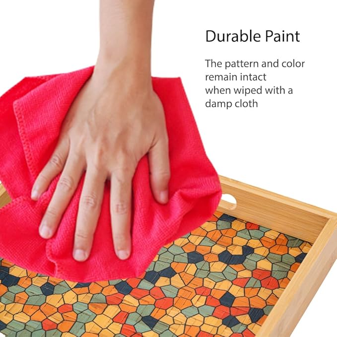 PEMAR 12.2" Square Bamboo Art Decor Tray with Handle, Food Drink Serving Tray for Breakfast Lap Bed Eating. Pattern Printed on Bamboo. Decorative Catchall Coffee Table Entryway Nightstand (Mosaic)