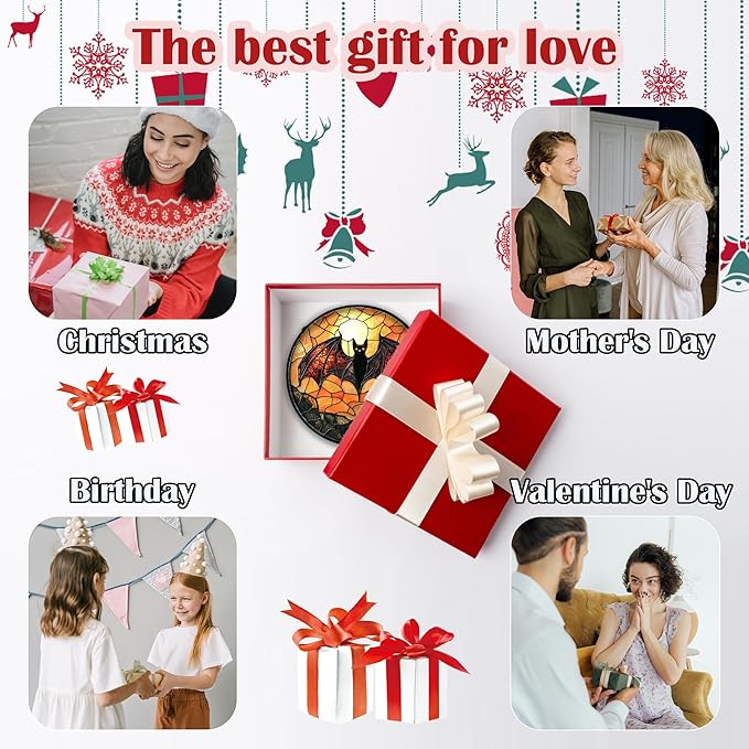 Stained Glass Window Hanging, Black Bat Sun Catcher for Door Home Decor Animal Suncatcher Christmas Mother's Day Birthday Gifts for Women Men Mom and Nana 6.3 in