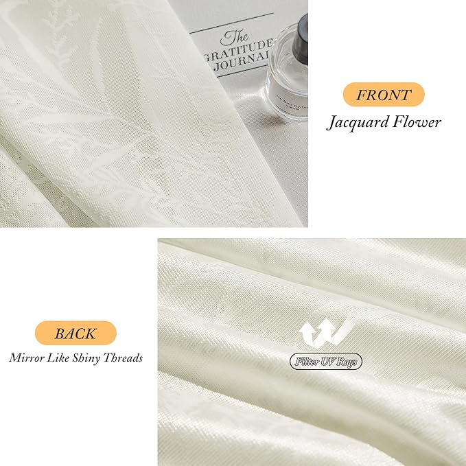 - Romantic Ambiance: Morning sunlight filters through Jacquard-embossed leaf patterns, casting a delicate veil of light in your space. These semi-sheer modern curtains blend artful design with poetic elegance, their intricate details faintly visible like whispers of a timeless romance