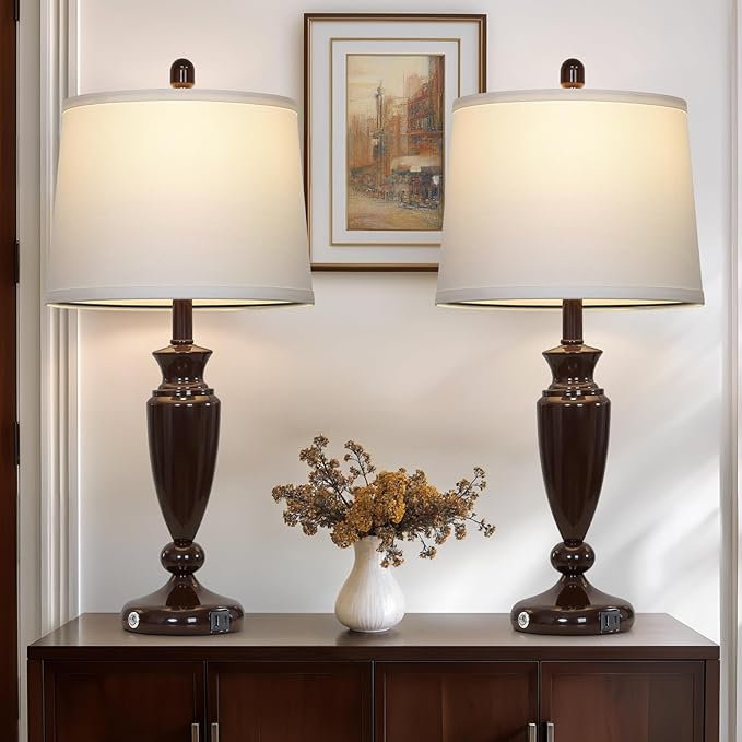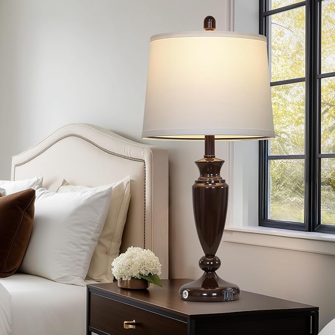 - 【3-Way Dimmable Touch Lamps】Our brown lamps for night stand are designed with three level brightness to meet your different needs for lighting. Just lightly tap on the built-in sensitive touch sensors to make quickly change brightness level, and response sensitively without delay, saving you from the trouble of fumbling with the switch in the dark. Low-grade is a perfect nightlight for sleeping or nursing, mid-grade is ideal for daily use, and high-grade is excellent for reading, studying and working.