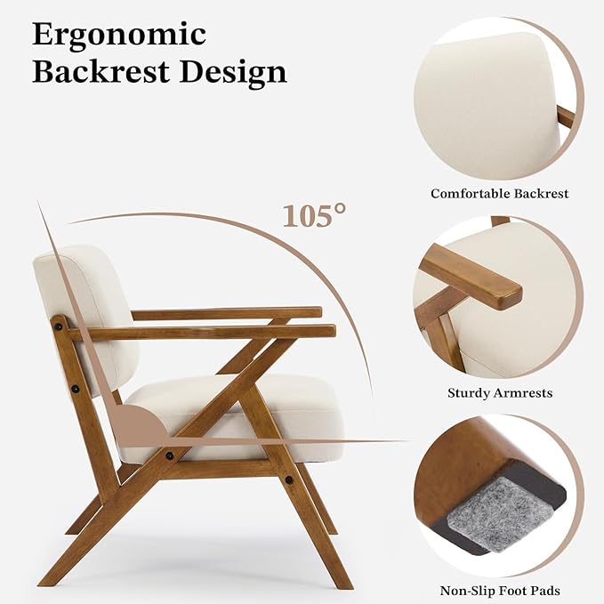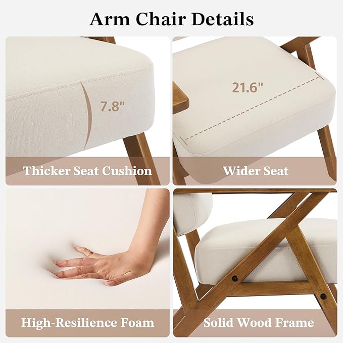 - COMFORT & DURABILITY: Designed for ultimate relaxation, the beige armchair features high-resilience sponge cushions for cloud-like softness. The extra-thick, widened upholstered seat and ergonomic backrest provide exceptional comfort and support, while the sturdy wooden frame holds up to 300 lbs, ensuring lasting durability.