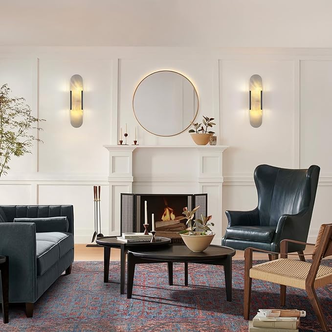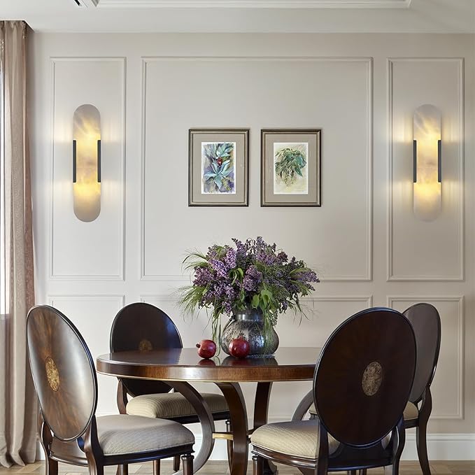 - High-quality Material: Modern alabaster wall sconces adopt oval design,metal aluminum base, anti-corrosion and rust strong and durable. Elegant appearance, perfect for modern minimalism style