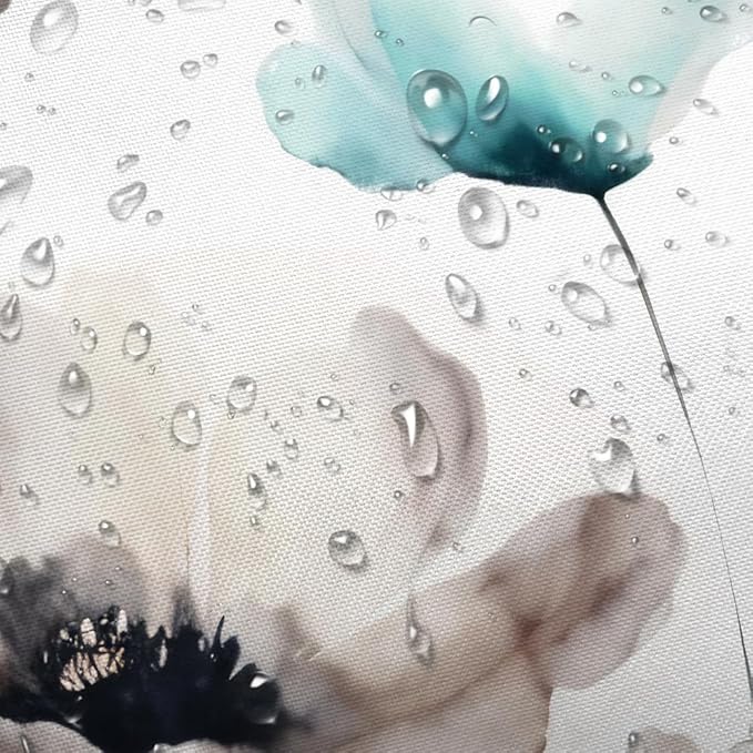 Boho Floral Shower Curtain, Cream Tan Beige Teal Grey White Flower Farmhouse Fabric Shower Curtains Set for Bathroom Decorative with Hooks 72 X 78 inch Spring Bath Decor