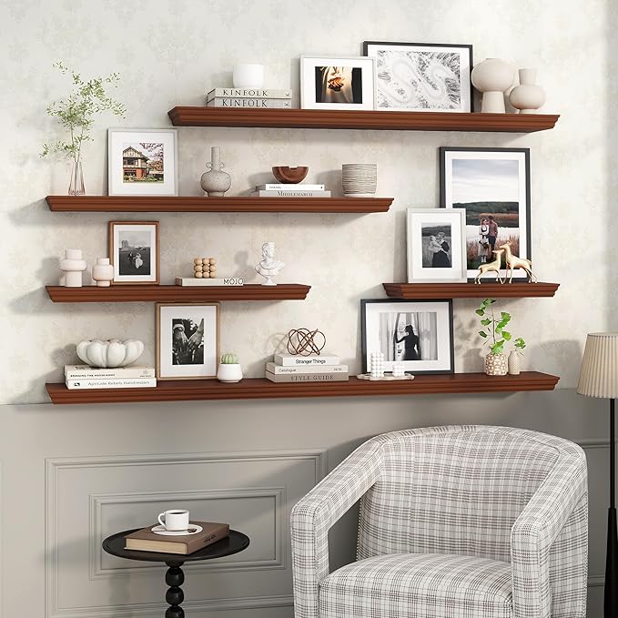 - 2-in-1 Design – Floating Shelf & Mantel: Doubles as a sleek floating shelf and a stylish fireplace mantel, perfect for displaying books, photos, candles, or seasonal décor. Its clean look and classic molding make it a versatile fit for living rooms, bedrooms, or entryways