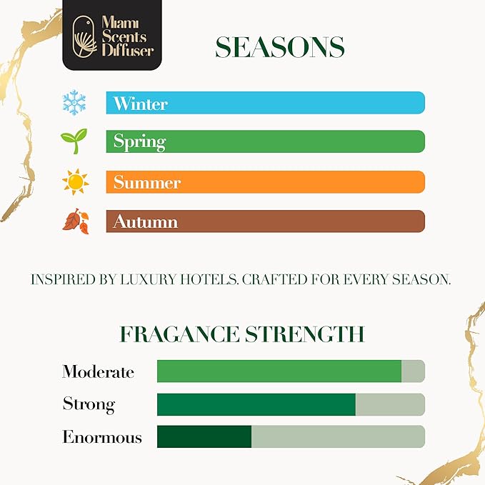 - π EXQUISITE HOTEL SCENTS INSPIRED BLEND β¨ Escape into a realm of irresistible luxury with: π Fresh bamboo to infuse your space with calming, natural freshness, πΈ Elegant jasmine to exude timeless floral sophistication, πΌ Delicate freesia to brighten the atmosphere with its airy charm, π Crisp apple to energize with a burst of vibrant, fruity zest. Expertly crafted, this premium fragrance transforms your home into a sanctuary of modern elegance, leaving an unforgettable impression with every breath.