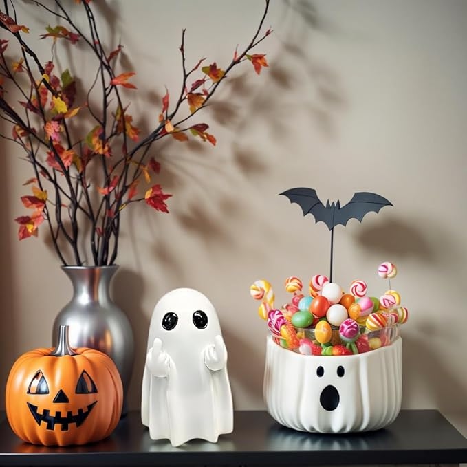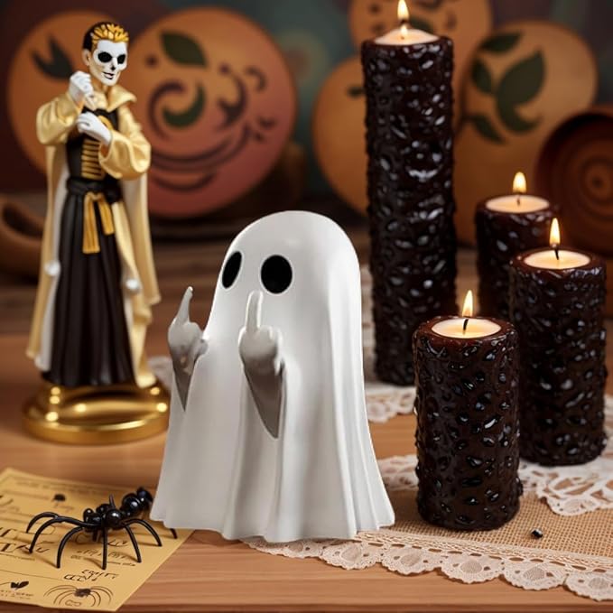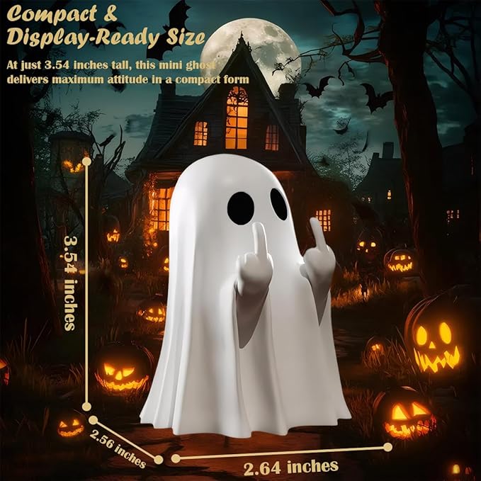 Halloween Funny Ghost Figurine Middle Finger, Small Scary Ghost Decor, Ghost Spooky Halloween Home Decorations, Funny Coffee Table Centerpieces Shelf Mantel Display Ornaments