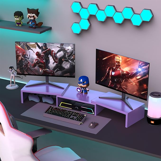 Dual Monitor Stand for Desk, Metal Monitor Riser, Purple Office Supplies Desk Accessories (Purple)