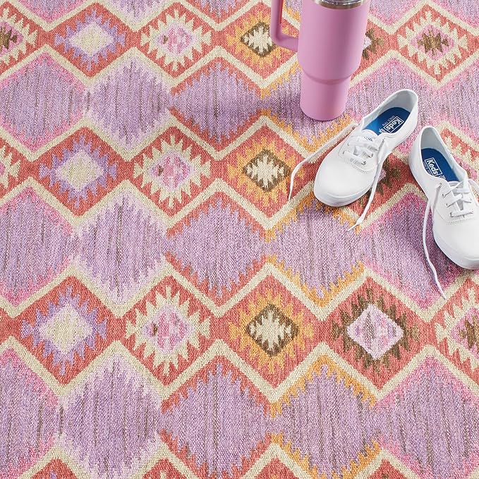 Dash & Albert Rhapsody Spice Machine Washable Rug, 5 X 8 Feet, Red/Purple Graphic Pattern - Premium Luxury Hotel Quality Soft Breathable Hypoallergenic Machine Washable Easy Care All Season