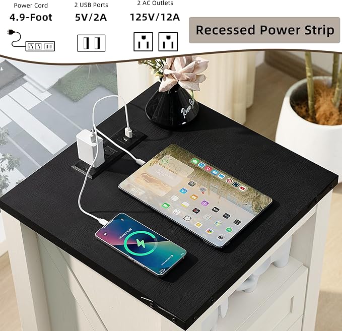 - [Night Stand with Charging Station] Our farmhouse bedside table comes with 2 standard AC outlets and 2 USB ports. This 2 drawer nightstand makes it more convenient for you to charge your cell phone and other devices at any time.