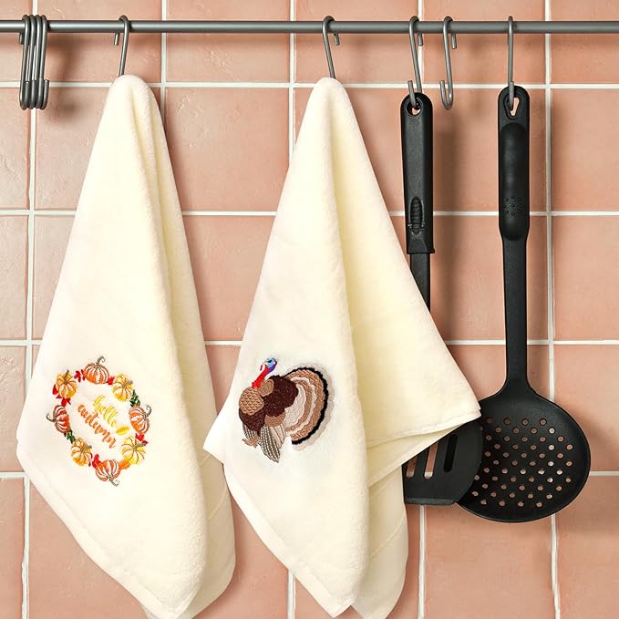 - Embroidered Design: Fall hand towels feature two designs with embroidered vintage turkey and pumpkin