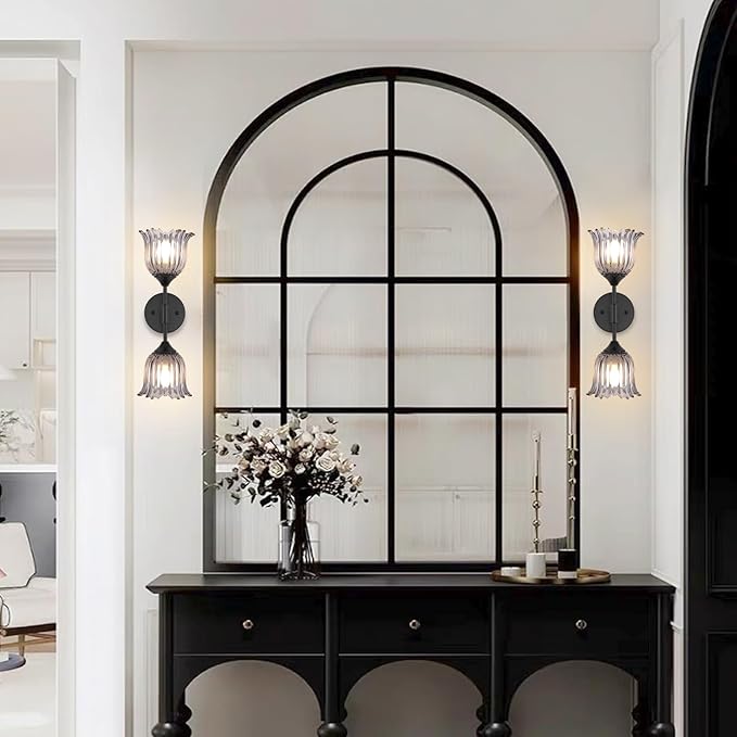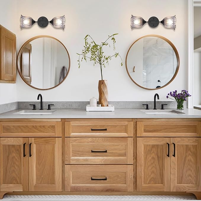 - 【Matte Black Frame Wall Light】Made with exquisite craftsmanship. Vintage bathroom light fixtures is crafted from high-quality metal with matte black finished ,elegant and unique. No need to worry about getting oxidation and color fading.