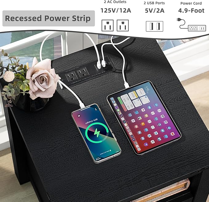 - [Night Stand with Charging Station] Our farmhouse bedside table comes with 2 standard AC outlets and 2 USB ports. This 2 drawer nightstand makes it more convenient for you to charge your cell phone and other devices at any time.