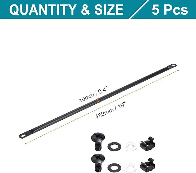 - Length: 482mm / 19 inch; Rod Diameter: 10mm / 0.4 inch; Package: 5 Pcs x 1U 19 Inch Horizontal Cable Bar(with 10 Silver Cabinet Screw and Nuts)