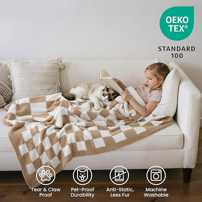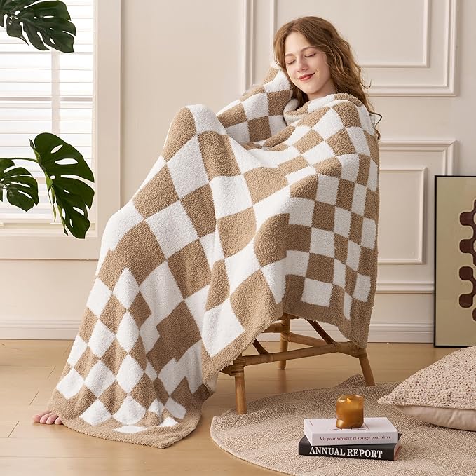 Joiedomi Throw Blanket for Couch Bed, Checkered Knitted Blankets Gifts for Women Mom Girls, Cozy Cute Soft Throw Home Room Decor Aesthetic for Women Mothers Birthday Gifts 50x70 Inches