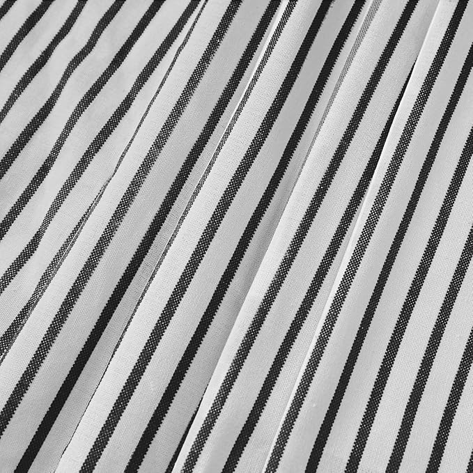 Awellife Farmhouse Black Shower Curtain Button Linen Textured Woven Fabric,Pleated Black Stripe,Country Style,72" W x 78" L