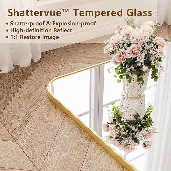 - DESIGN:The top of the floor mirror is designed with rounded corners, the whole territory is surrounded by aluminum alloy, the texture is slim, you can easily move the whole mirror, the surface is treated with anti-rust, durable and not fading, and the back of the mirror is made of explosion-proof film, which protects you and your family from harm