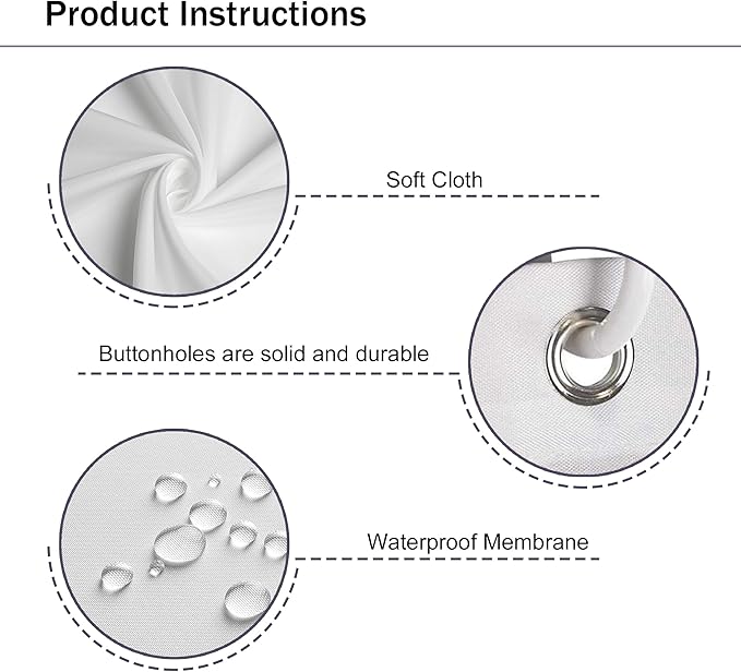 - ▶What' s Included: Each fabric shower curtain features 12 high-quality plastic hooks.