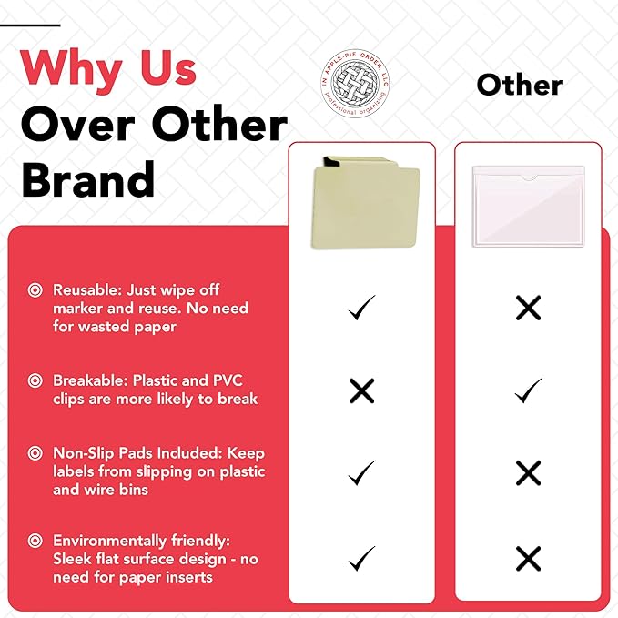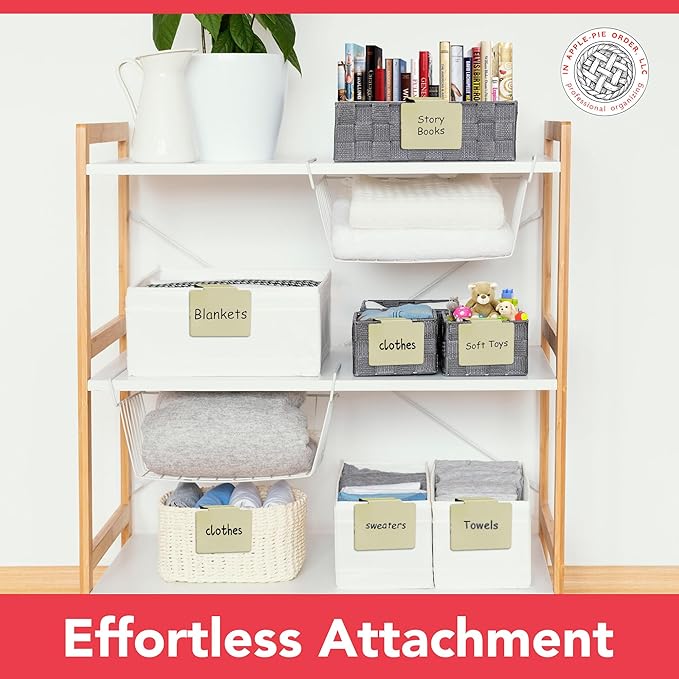 - ๐๐ฎ๐ฌ๐ญ๐จ๐ฆ๐ข๐ณ๐๐๐ฅ๐ ๐๐๐ ๐ฌ: The clip-on design offers a secure and convenient way to attach labels to your bins. The dry-erase labels allow for easy customization, so you can tag your storage according to your needs. This flexibility empowers you to create a system that perfectly reflects your unique organizational style.