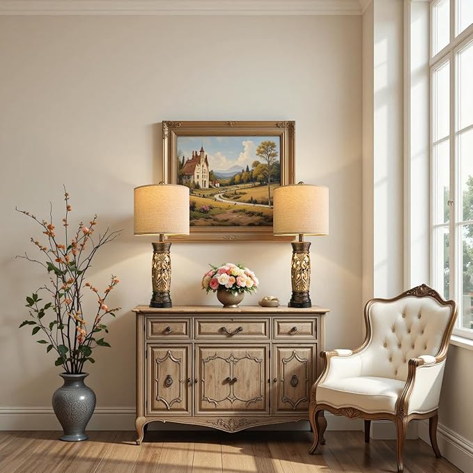 - Antique Gold Finish: Crafted from premium resin with a hand-applied antique gold finish, the lamp offers the look of time-aged metal with a lighter, more durable structure. Unlike brass or iron, it resists oxidation and remains stable over time—designed to bring enduring charm to modern households.