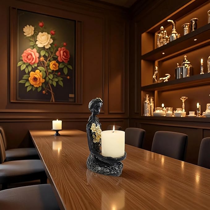 African Lady Figurine Candle Holder with African Tribal Totem for Wedding,Church,Holiday Decor-African Decorative Women Statues, Candlestick Holder for Home and Table Decor(406-Black)