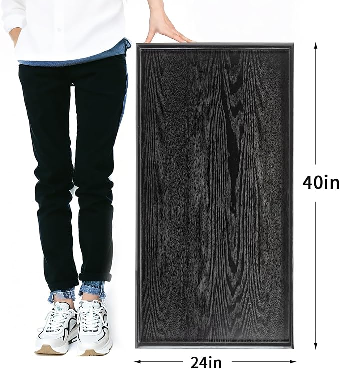 40 x 24 Inches Extra Large Solid Wood Serving Tray for Tea Coffee Table Snack Food Meals Serving Plate Kitchen Party Bar Breakfast Server with Raised Edges Black Wooden Decorative Ottoman Tray