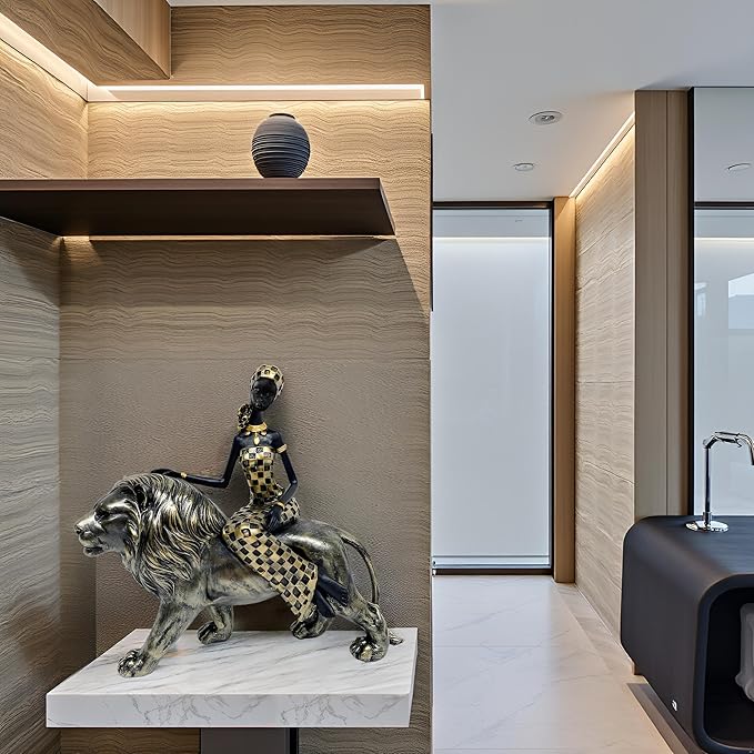 - 【Unique Design】African black lion & tribal female statues, adorned with tribal totems, embody African spirituality. These animal/human-themed home decor pieces fuse cultural symbols celebrating nature, life, and African spiritual heritage.