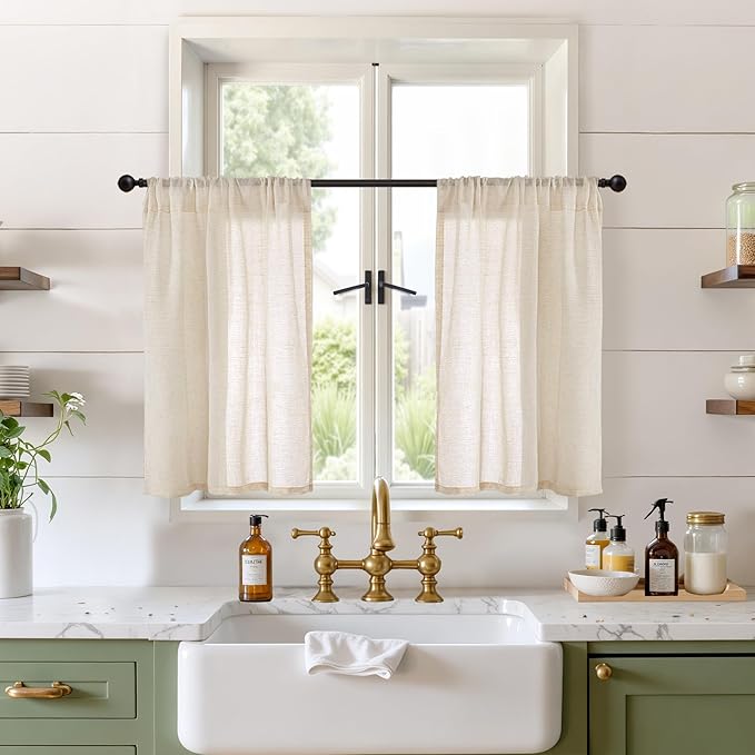 - PERFECT DECOR:This natural and practical kitchen linen curtains harmonizes seamlessly with existing home decor styles, infusing warmth and sophistication into living space. It's ideal for a wide range of small window including kitchen, cafe, living room, bedroom, farmhouse, office, laundry and more. While eco-friendly and pet-friendly makes this curtain recyclable.