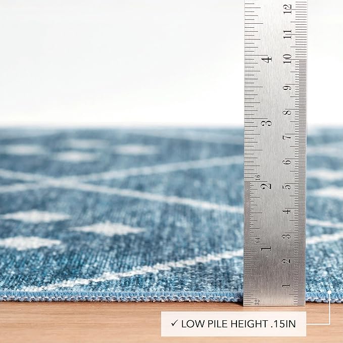 Dash and Albert Kota Machine Washable Area Rug - 5' x 8' Indigo - Diamond Accent Rug - Anti-Slip Backing, Lightweight, Machine Washable, High Traffic Areas Kitchen, Mudroom, Laundry Room