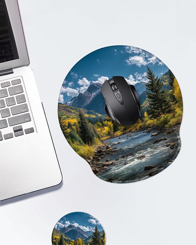 - Functional Coaster and Coordinated Aesthetics: Keep drinks secure and desks pristine with our 3.9" non-slip coaster, designed to catch every coffee spill and condensation ring. Paired with the cute mouse pad with wrist rest, they share identical artistic designs—modern marble, kawaii florals, or retro pixels—to transform your workspace into a clutter-free stylish sanctuary.