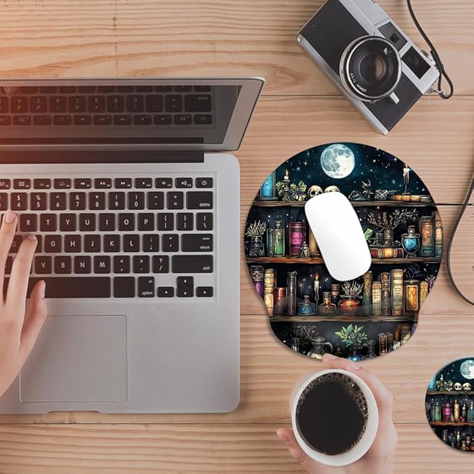 - Functional Coaster and Coordinated Aesthetics: Keep drinks secure and desks pristine with our 3.9" non-slip coaster, designed to catch every coffee spill and condensation ring. Paired with the cute mouse pad with wrist rest, they share identical artistic designs—modern marble, kawaii florals, or retro pixels—to transform your workspace into a clutter-free stylish sanctuary.