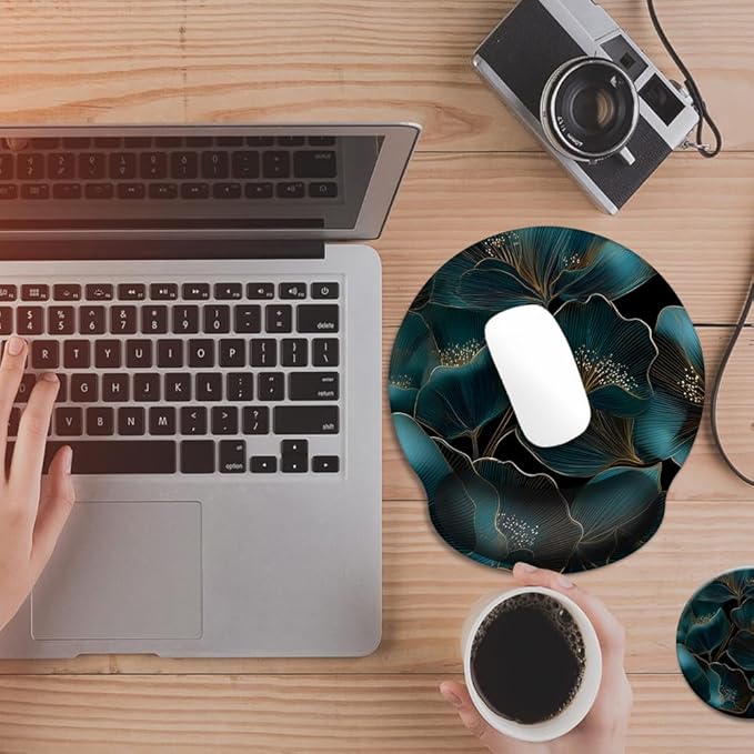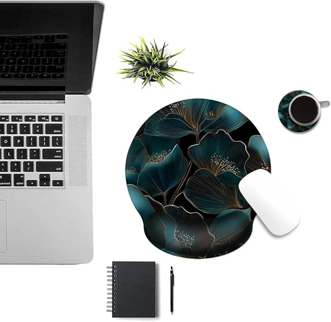 - Functional Coaster and Coordinated Aesthetics: Keep drinks secure and desks pristine with our 3.9" non-slip coaster, designed to catch every coffee spill and condensation ring. Paired with the cute mouse pad with wrist rest, they share identical artistic designs—modern marble, kawaii florals, or retro pixels—to transform your workspace into a clutter-free stylish sanctuary.