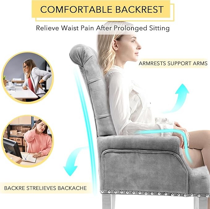 - BEAUTIFUL DESIGN: The slightly curved backrest of the bedroom chair features hand-stitched buttons, simple yet elegant. The armrests on both sides of the high back chair give the entire dining chair a noble look and can also support your arms to avoid fatigue from sitting for long periods of time.