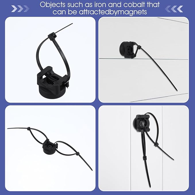 - Long lasting to use: the black magnetic zip tie mounts are made of NdFeB magnets, A3 steel, rubber and nylon, sturdy and reliable in quality, and the proper magnetism makes them not easy to fall off from metal surfaces; The black zip ties are made of nylon, ensuring nice strength and long term application