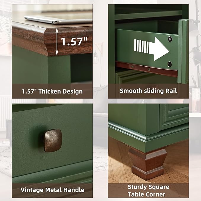 - [Farmhouse Wood Nightstand] :This green nightstand featuring a vintage textured design paired with an elegant texture, combines farmhouse style with modern style and is the ideal match for your bedroom and living room furniture.
