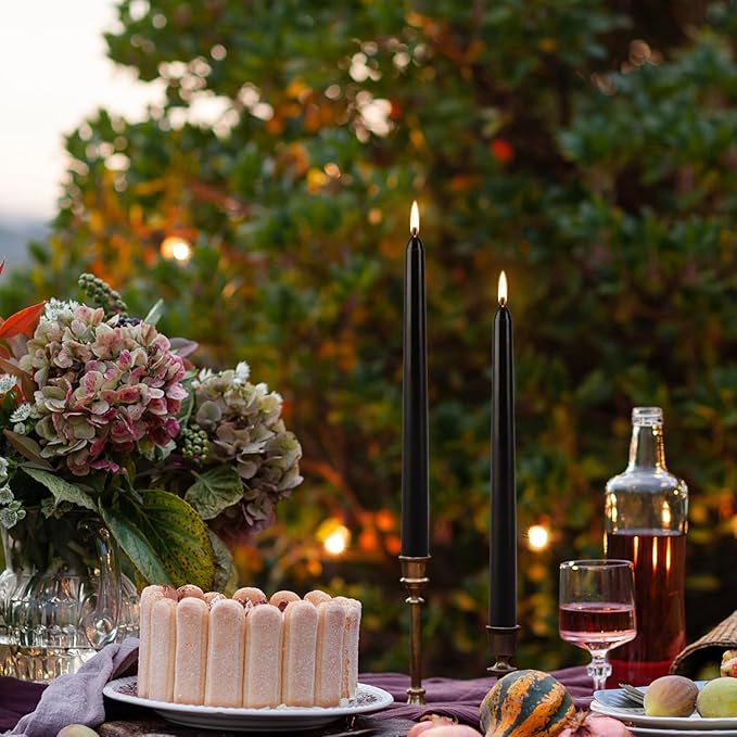 - Classic aesthetics: The smooth black and elegant conical shape offer an timeless look, complementing any decorative style, from modern to traditional. The classic black design exudes sophistication and elegance, effortlessly enhancing the aesthetic of any setting. Whether you're setting the mood for a romantic evening, hosting a special event, or creating a peaceful environment for meditation and relaxation, these candles are a versatile choice.