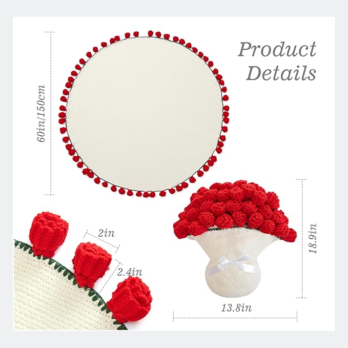 - Large Size: 60 inches wraps around the whole body, with soft and high-quality chenille that perfectly balances warmth and breathability, this floral blanket is suitable for every season. Whether she is your sister, girlfriend, or a special woman in your life, this crochet rose bouquet blanket is a gift she will cherish!
